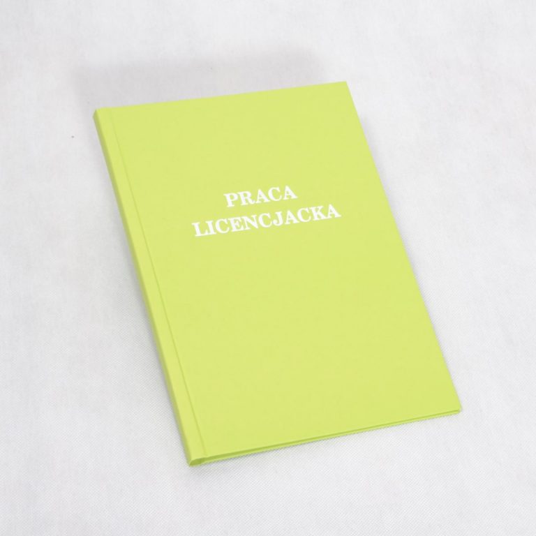 Wybór oprawy: twarda oprawa z wydrukiem Twojej pracy dyplomowej lub sama okładka (bez wydruku).