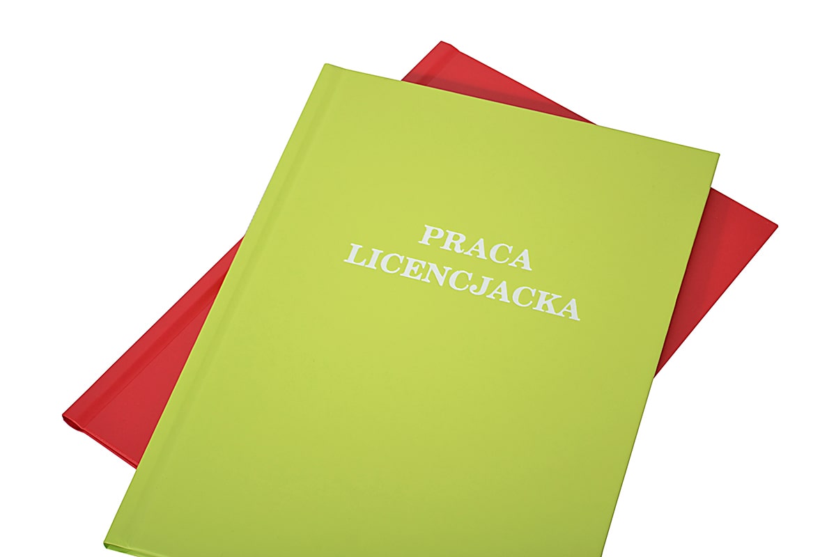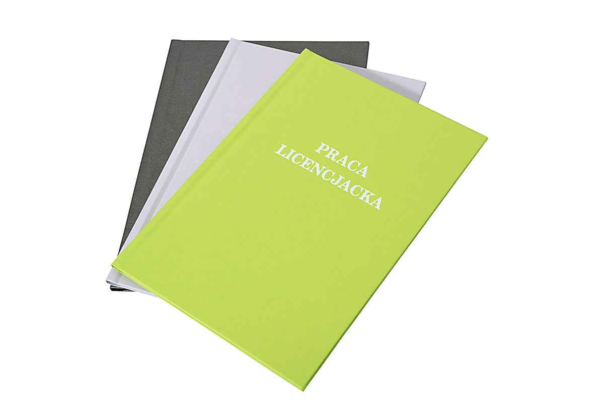 Wybór oprawy: twarda oprawa z wydrukiem Twojej pracy dyplomowej lub sama okładka (bez wydruku).