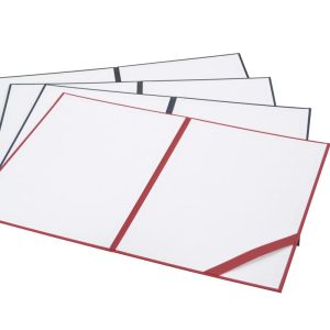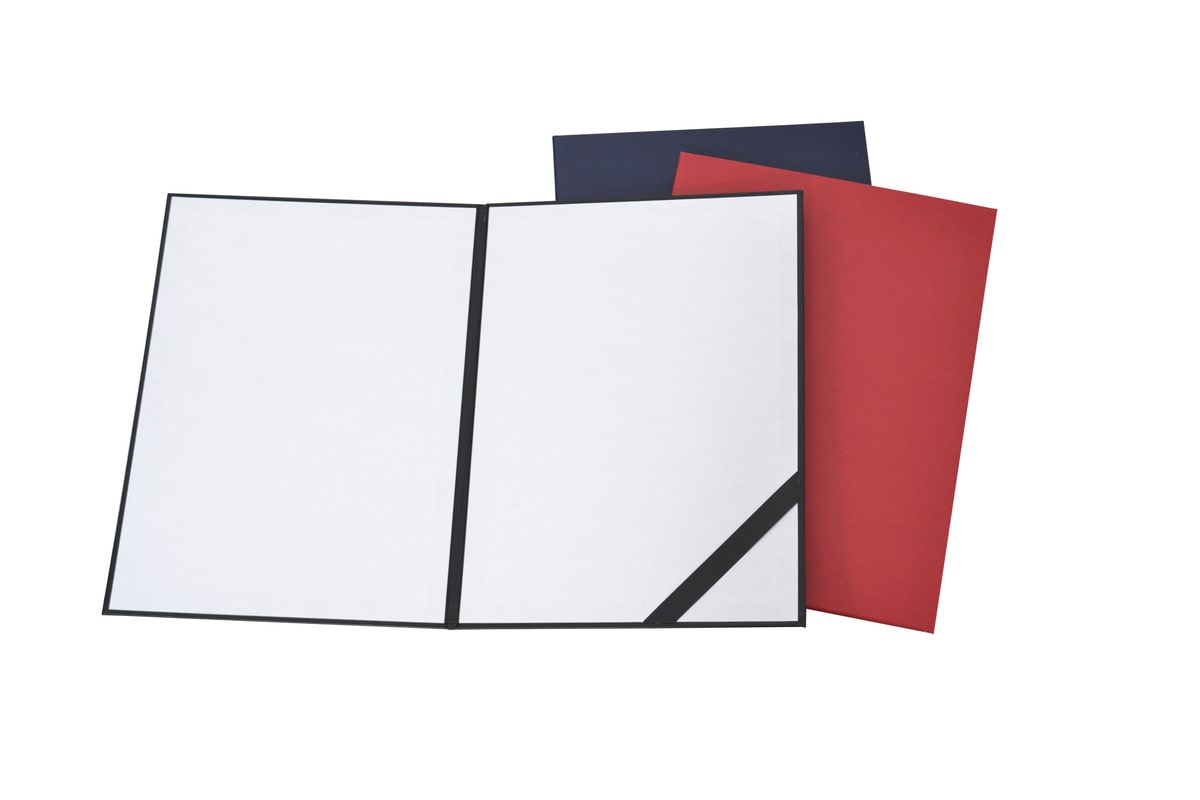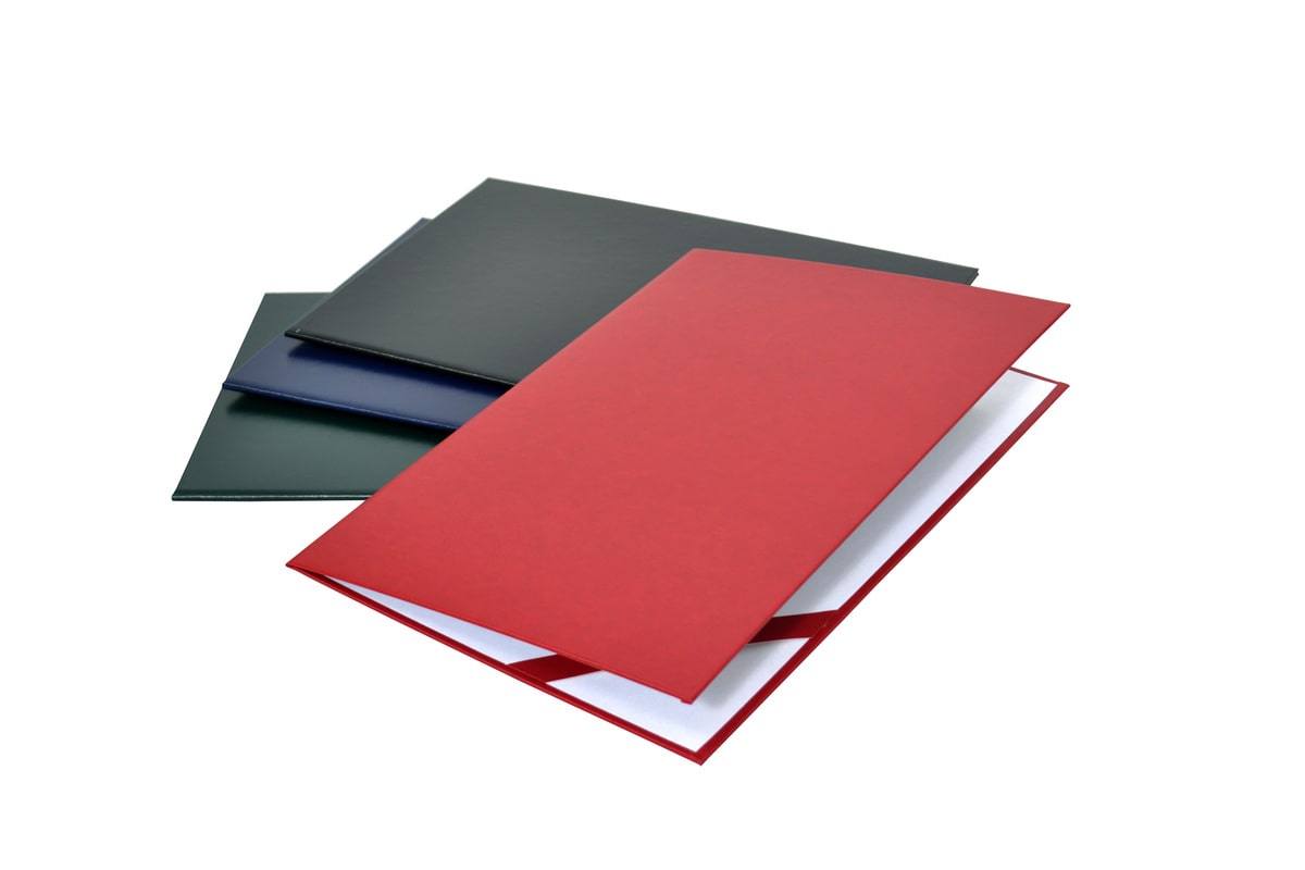- Skóropodobne: czarny, granatowy, bordowy, zielony. Na okładkach skóropodobnych możliwe jest delikatne prześwitywanie nadruku, wynikające ze struktury materiału.
